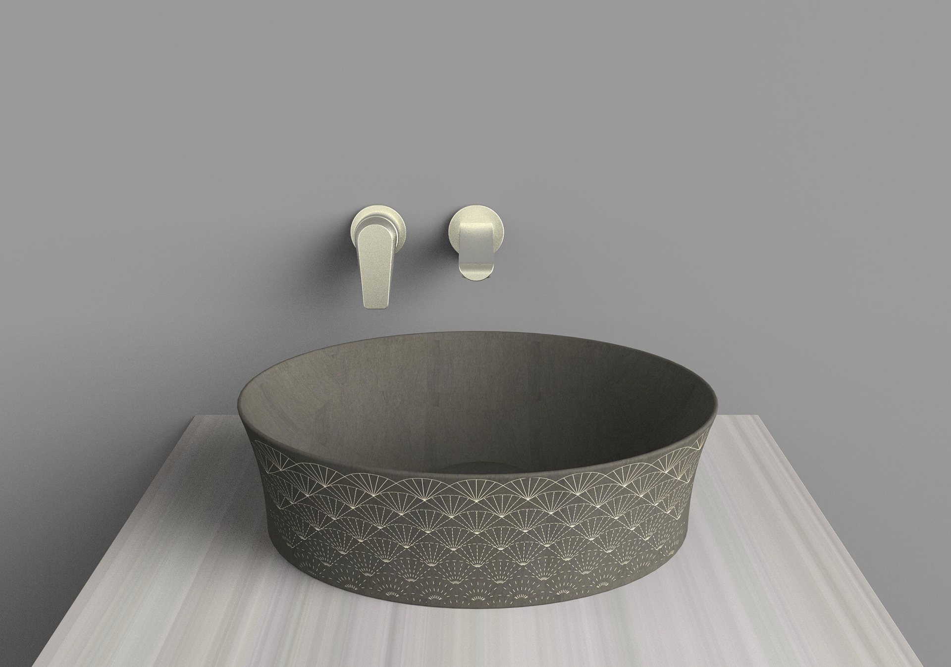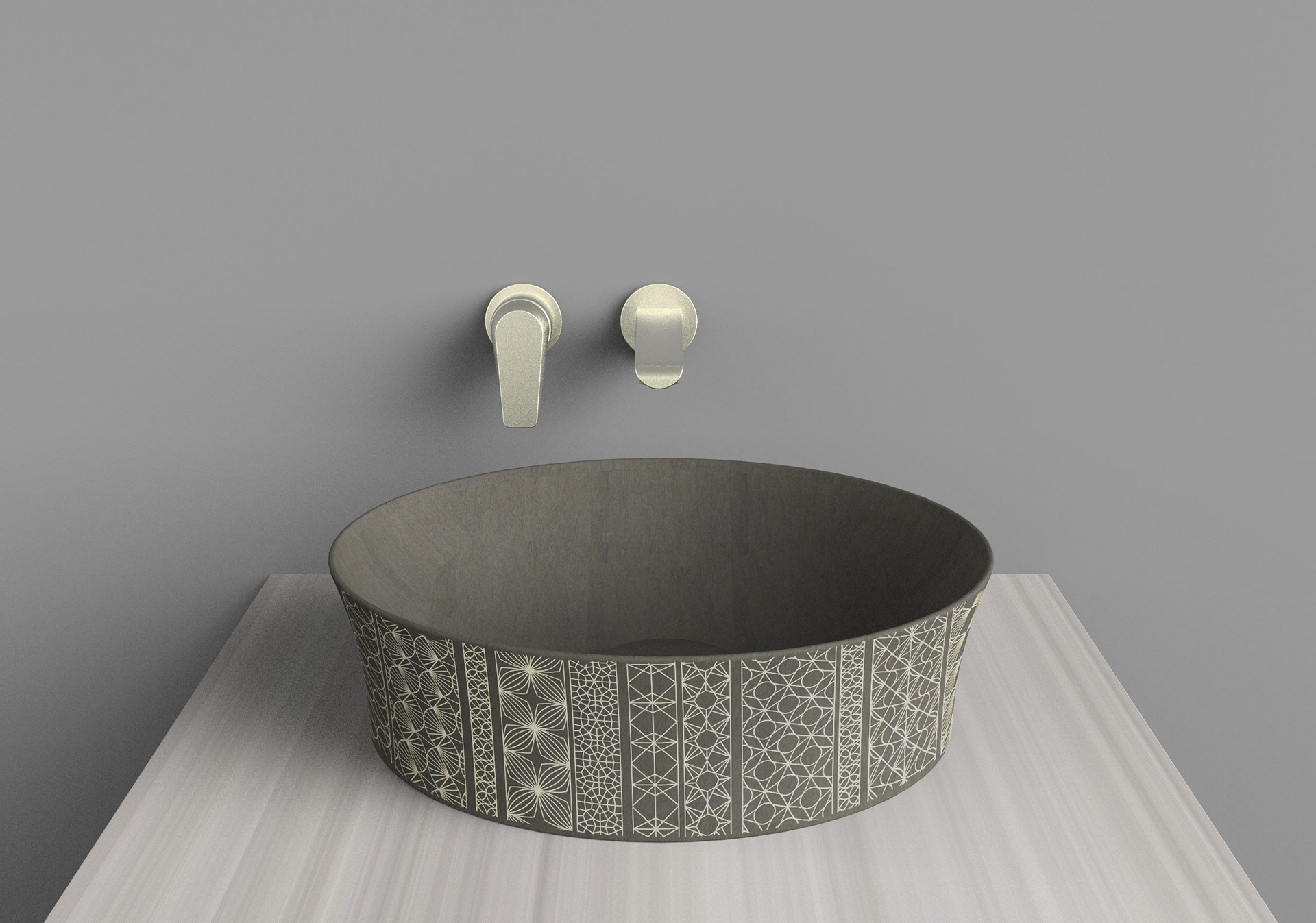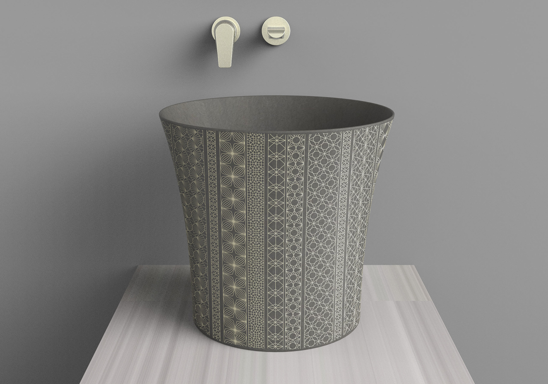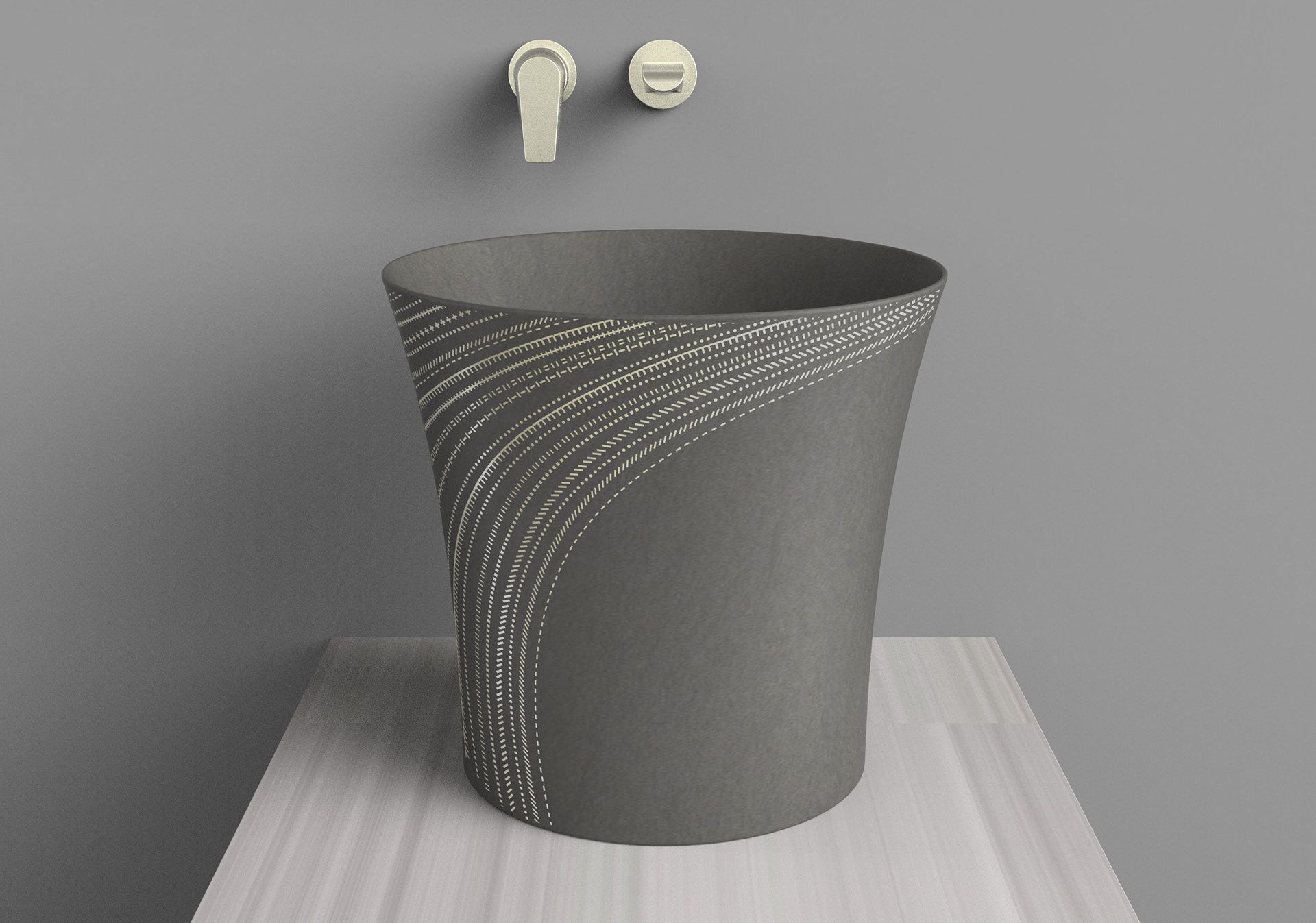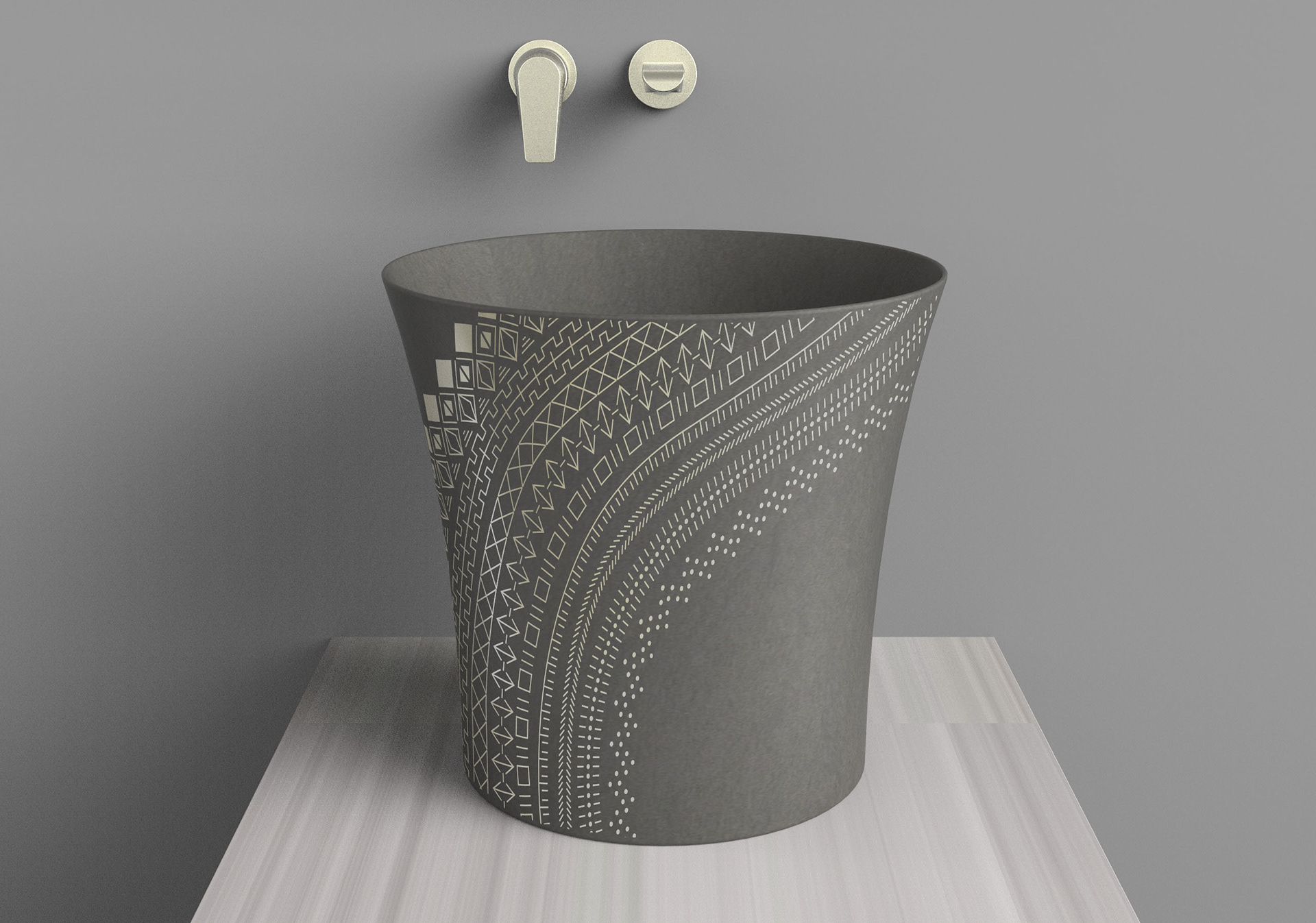 Kensho unearths modern stone vessels for the contemplative vanity. Inspired by the ancient Italian technique aquaforte, Kensho patterns are etched then gilded. A curious dimensionality results, compelling you to touch. We took a deep dive into Japanese sashiko patterns to develop the signature patchwork.